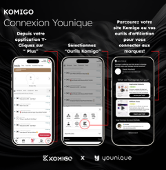 - Pago optimizado para afiliados: gana dinero con varias marcas afiliadas a Komigo en un solo pago mensual sencillo, que se contabiliza por separado de tu remuneración de Younique.*